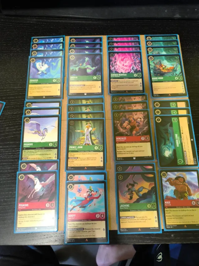 Mazo de 60 cartas preparado para jugar directamente, con fundas azules. Cartas y cantidades lo que se ve en las fotos. Disney lorcana