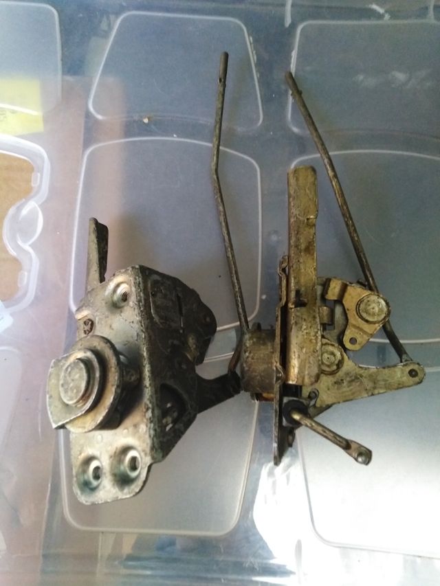 Detalles del productoPar de mecanismos para las cerraduras de un Seat Fiat 850 Spider. Cortando las varillas de accionamiento sirven para el Seat 600 y 850 con cerraduras tipo boton pulsar o pulsador