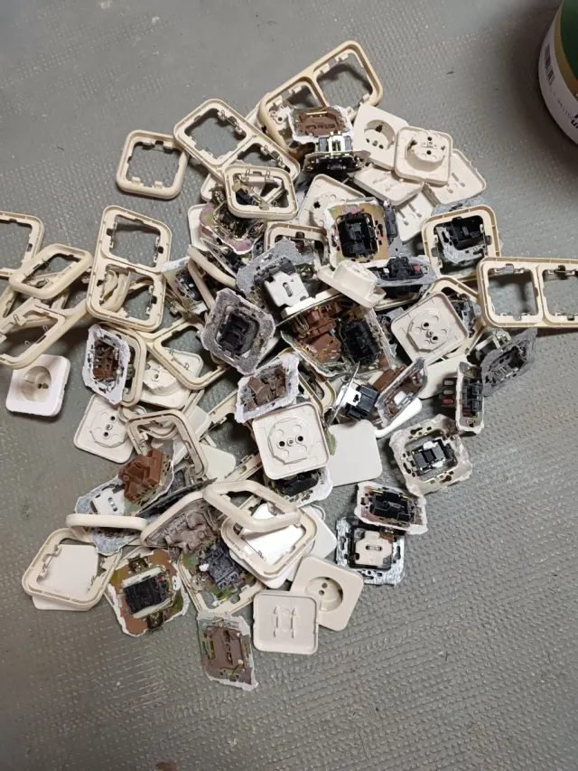 Detalles del productoLote de mecanismos Simon para instalaciones eléctricas. Se incluyen marcos y mecanismos.