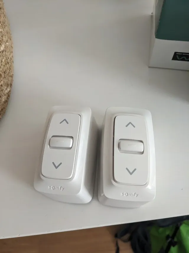 2x Pulsador tres posiciones en superficie "Somfy inis mounted box fp". Usados muy buen estado pero con muesca lateral para salida de cables por canaleta
