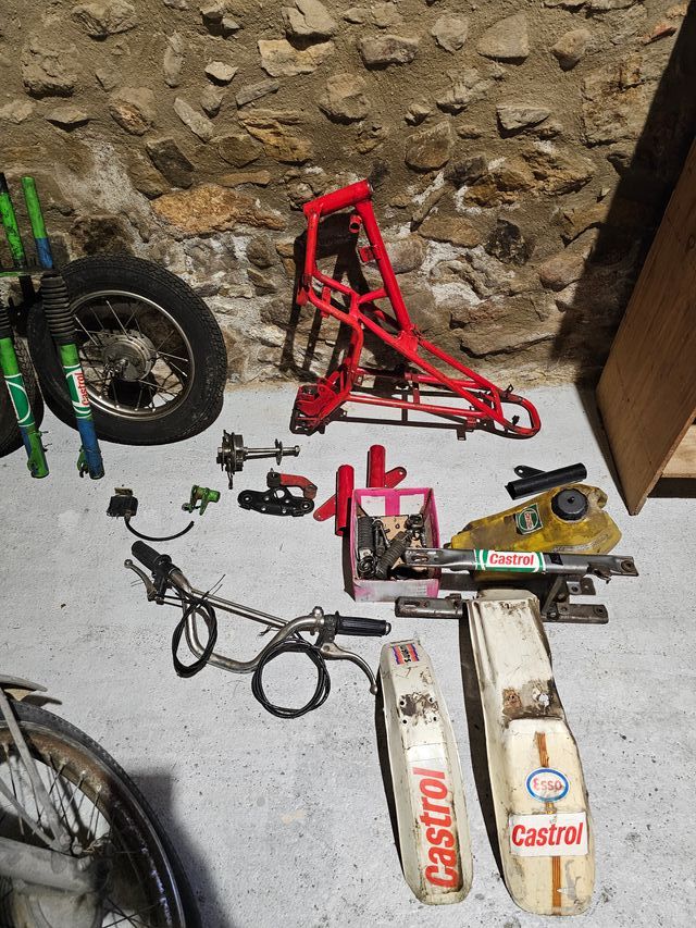 Detalles del productoSe vende chasis y varias piezas de Mecatecno llantas horquillas plasticos....en buen estado se puede hacer lote completo....envío por mensajeria rapida