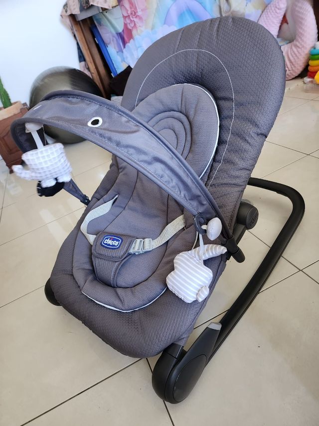 Detalles del productoPreciosa mecedora para bebé de la marca Chicco, en perfecto estado. Es de color gris y tiene un diseño moderno y elegante.