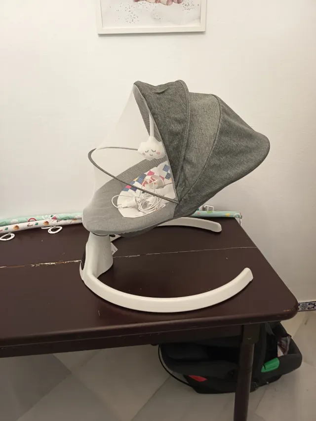 Detalles del productoMecedora para bebés en color gris, ideal para el descanso y entretenimiento.