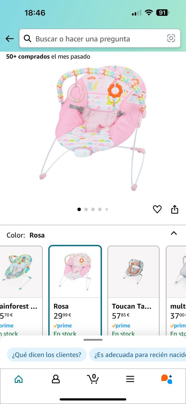 Detalles del productoMecedora para bebés en color rosa con un divertido estampado.