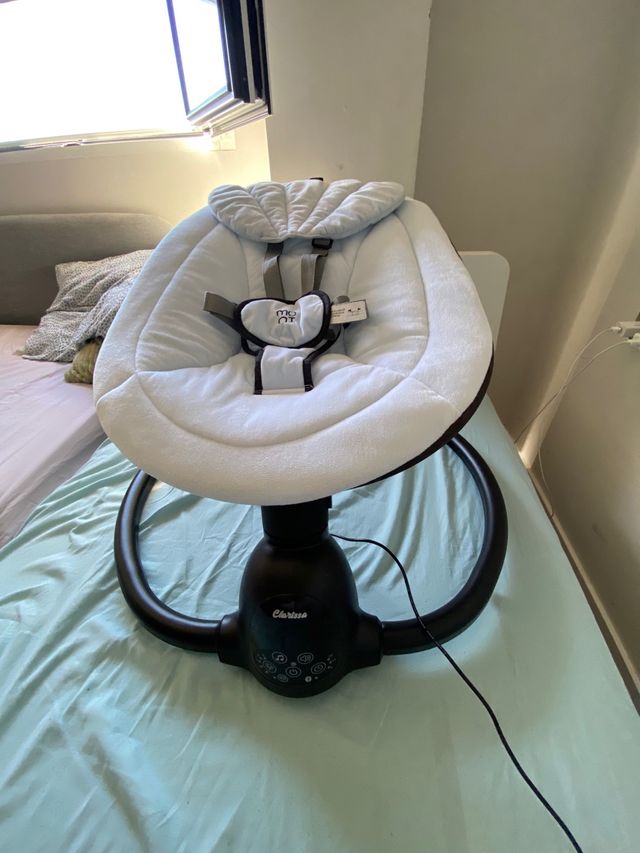 Detalles del productoMecedora para bebés en color azul claro, con un diseño acolchado y suave.