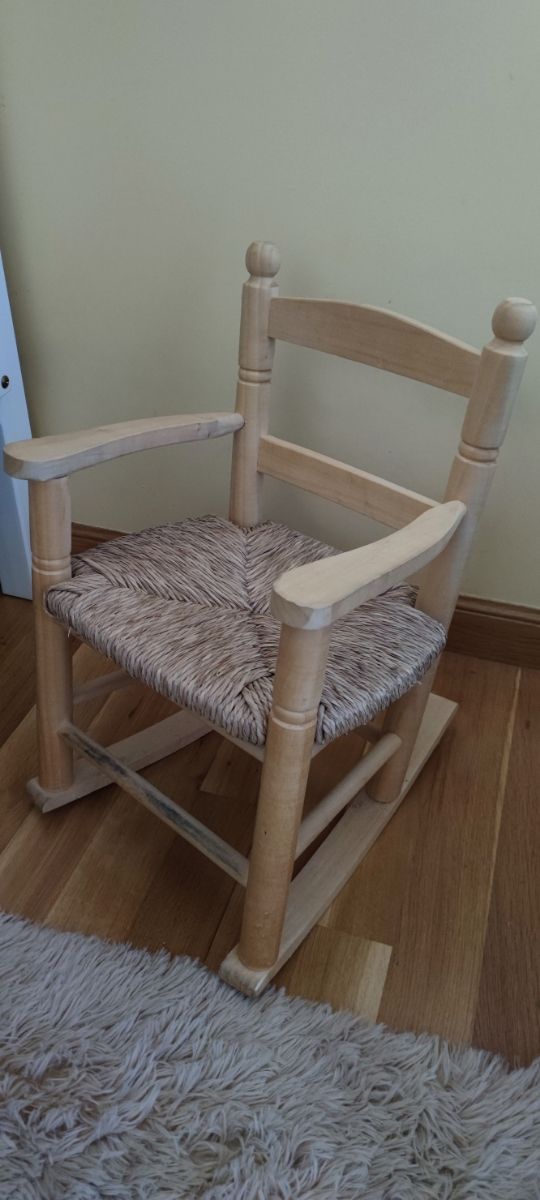 Vendo mecedora infantil, perfecta para los peques o incluso para decorar una habitación infantil. Está en buen estado, sólo algún roce en la barra donde se ponen los pies.