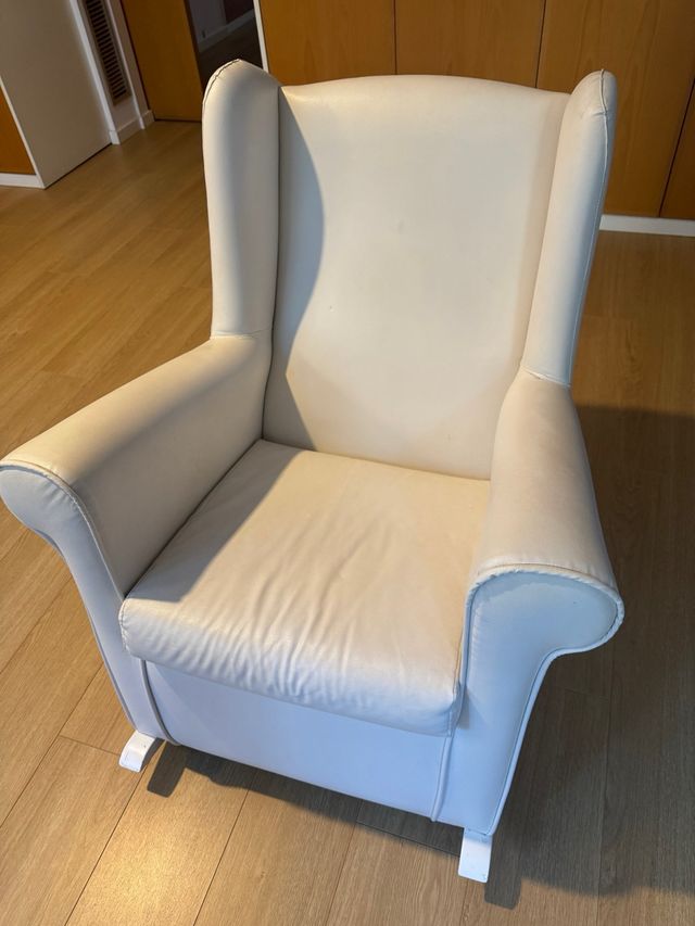 Detalles del productoMecedora de lactancia en piel blanca, ideal para crear un espacio acogedor.