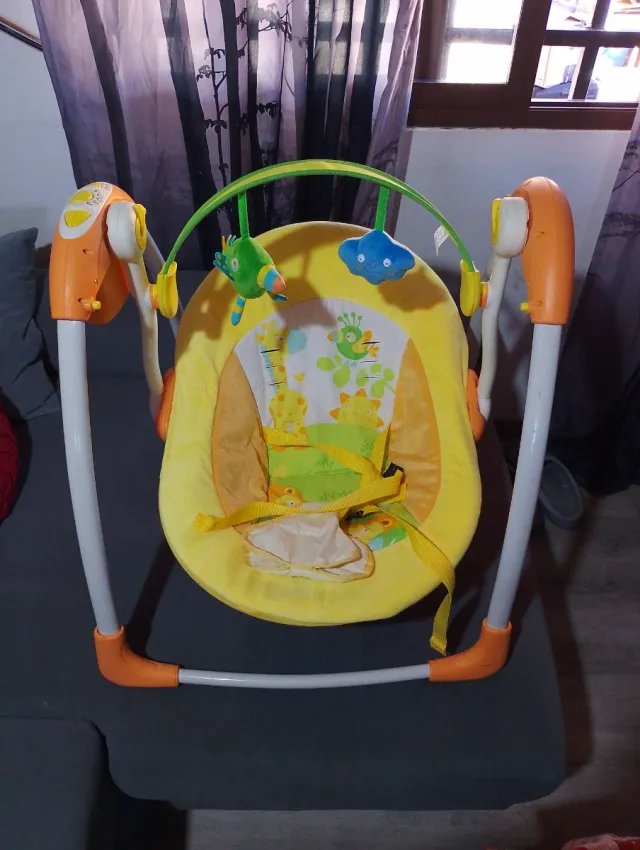 Detalles del productoMecedora musical para bebés con un diseño alegre y colorido.