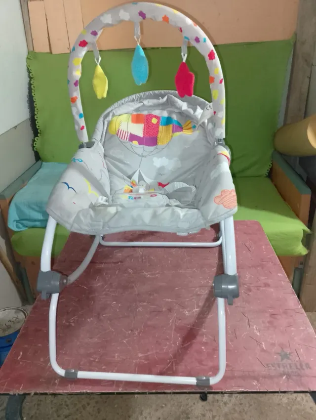 Detalles del productoMecedora cómoda y segura para bebés, con un divertido arco de juegos.