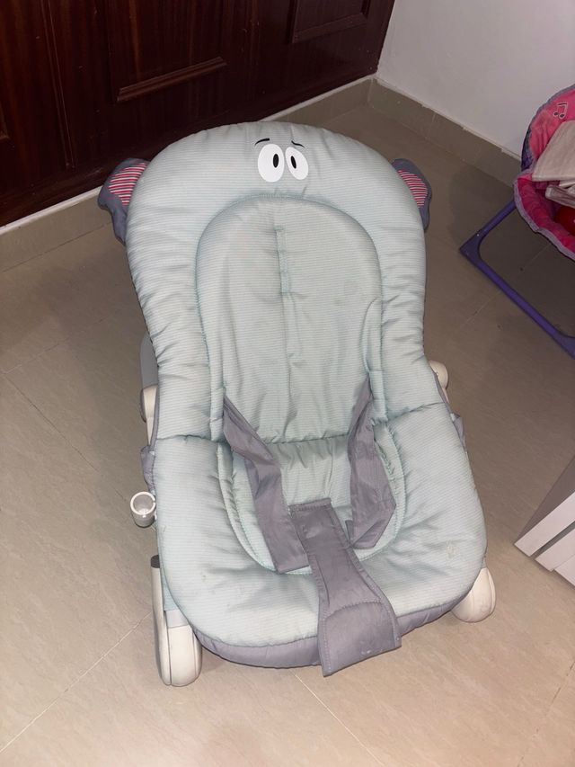 Detalles del productoMecedora acolchada con un adorable diseño de elefante, ideal para relajar a los más pequeños. Su estructura combina tela y plástico para mayor durabilidad.