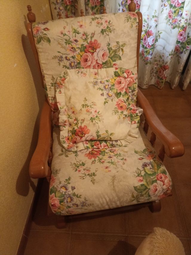 Mecedoras y mesa cama lla con brasero y cortinas a juego