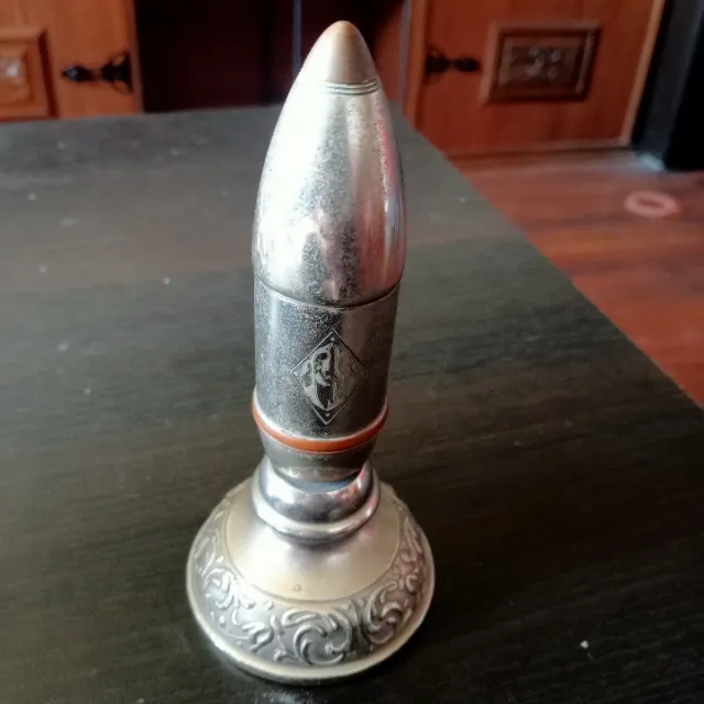 Detalles del productoMechero con diseño de bala, ideal para coleccionistas. Presenta un acabado metálico plateado y detalles grabados.