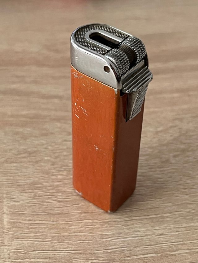 Detalles del productoMechero encendedor vintage de la marca Feudor, fabricado en Francia. Su diseño clásico y acabado en color naranja le dan un toque retro.
