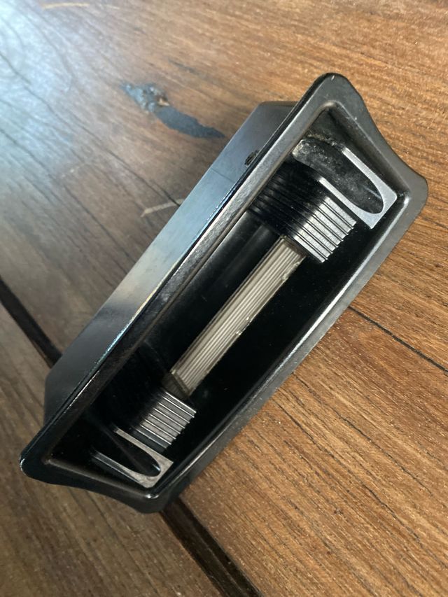 Mechero metálico con un diseño robusto y elegante. - Material: Metal. - Color: Negro y plateado.