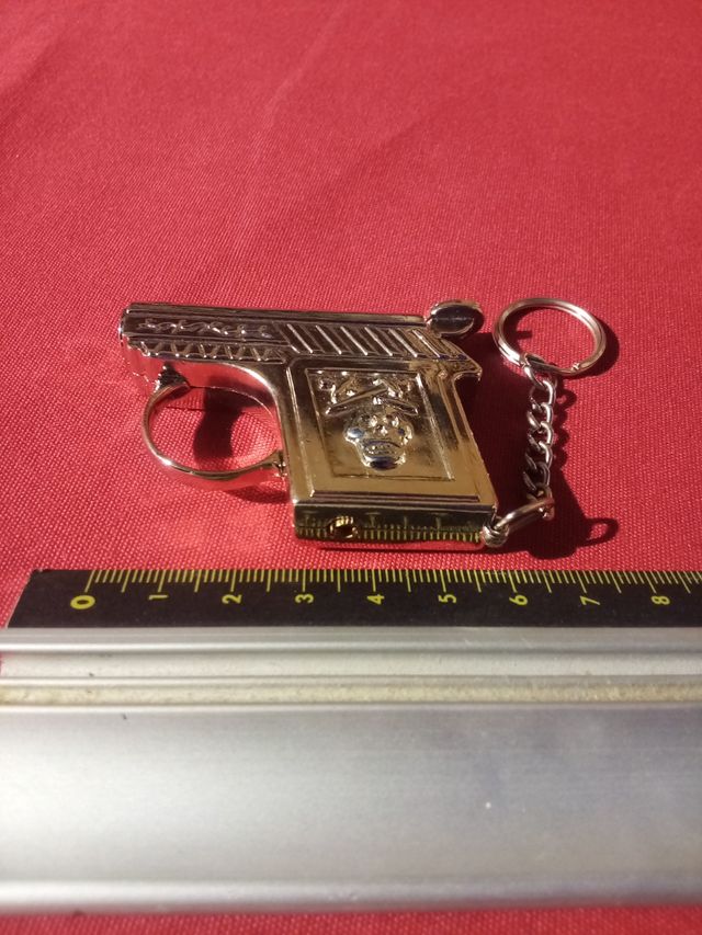 Detalles del productoMechero pistola , de gas, con dibujos de una calavera con dos espadas en las cachas. En buen estado . lleva una caja de plástico.