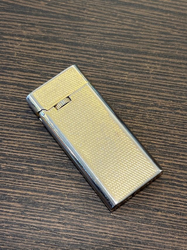 Elegante mechero vintage con acabado chapado en oro. Un accesorio con un diseño clásico y refinado. - Diseño texturizado en la superficie. - Detalles metálicos plateados.