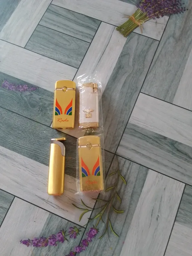 Detalles del productoConjunto de mecheros metálicos con acabado dorado.