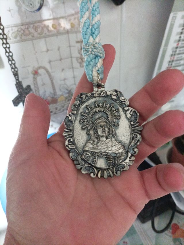medalla antigua de la cofradía de Santiago de Compostela de Santísimo Cristo de la Unción y nuestra Señora de la Serenidad