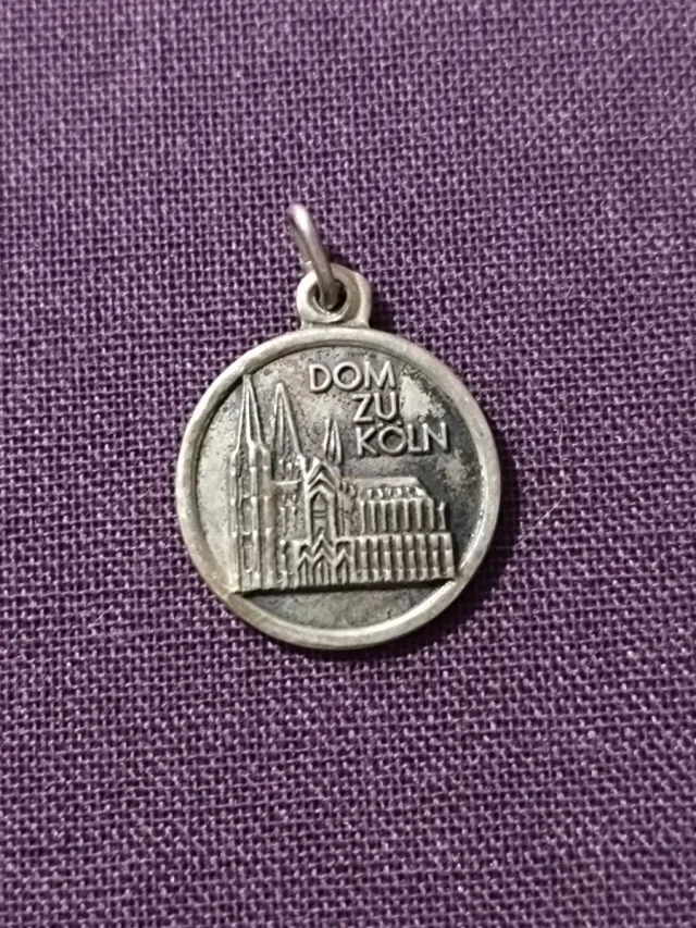 Detalles del productoMedalla devocional en plata de ley 800 (contraste visible), con relieve de la Catedral de Colonia (Dom zu Köln), uno de los templos góticos más emblemáticos de Europa. En el reverso lleva la inscripción “Gott schütze dich” (“Dios te proteja”), típica de las piezas religiosas alemanas de mediados del siglo XX.