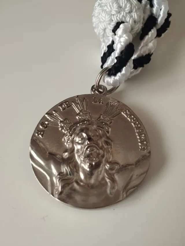 Detalles del productoMedalla de la Hermandad El Cachorro de Sevilla. Presenta una imagen de Jesucristo con la corona de espinas.