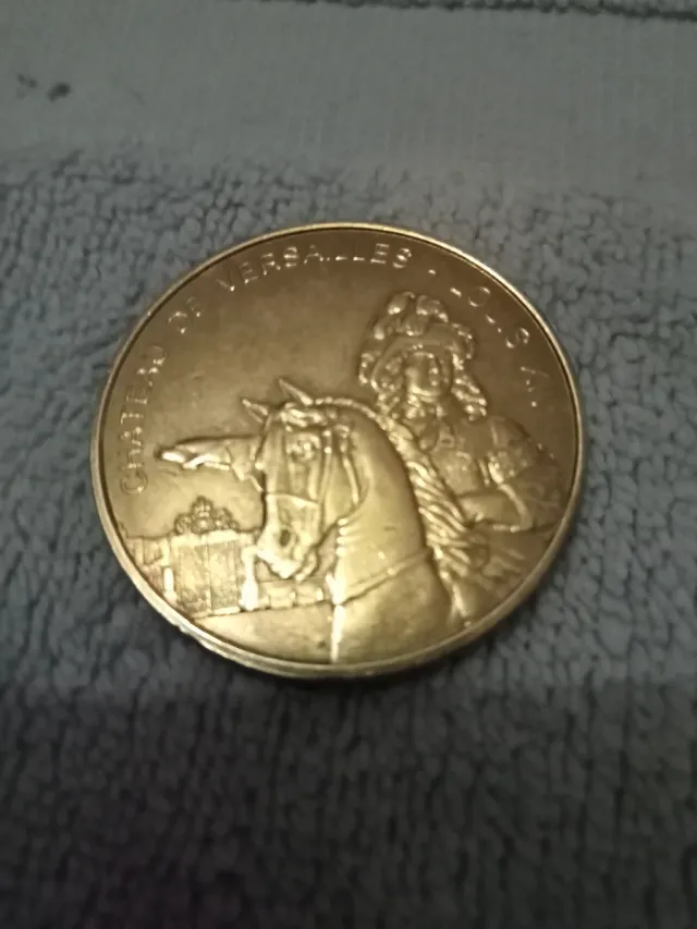 Detalles del productoMedalla conmemorativa del Château de Versailles dedicada a Luis XIV. Una pieza con un diseño detallado.