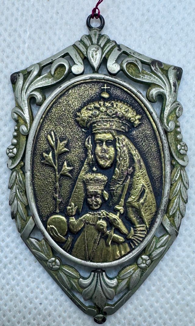 Detalles del productoMedalla religiosa con diseño de la Virgen de Montserrat. Fabricada en latón con detalles en dorado.