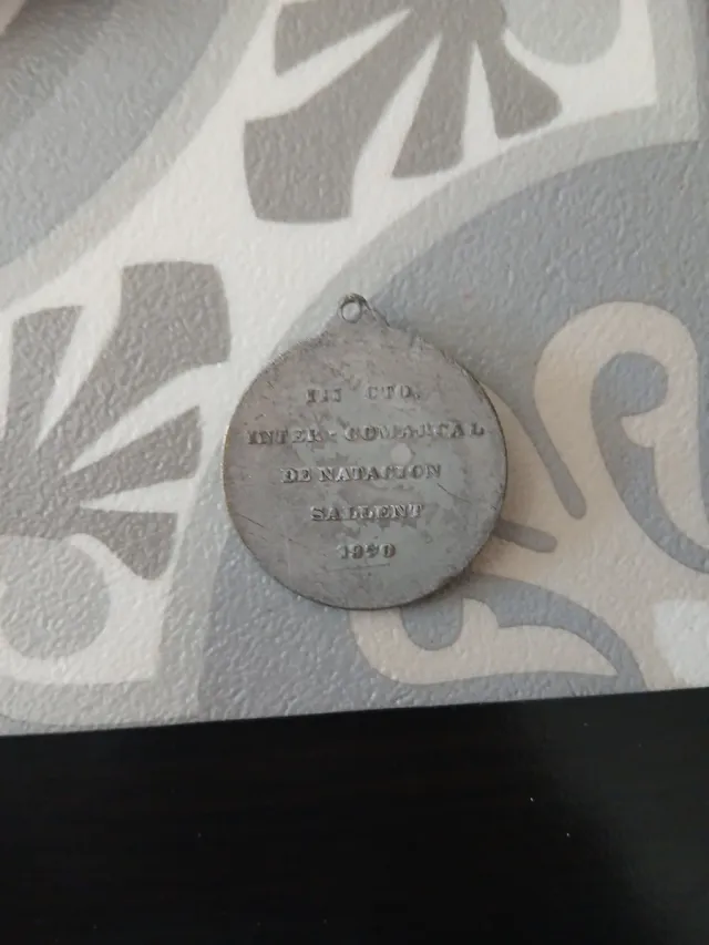 Medalla conmemorativa de la competición de natación. - Inscripción: I.N. C.T.D. INTER-COMARCAL DE NATACION SALLENT 1970 - Material: Metal plateado.
