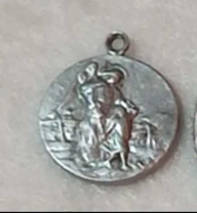 Medalla religiosa con diseño grabado. - Diseño de figuras. - Con asa para colgar.