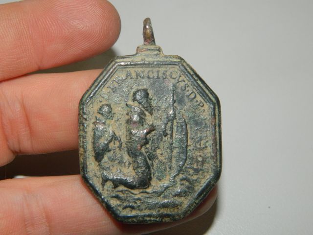 Detalles del productoAntigua medalla religiosa, muy dificil pues lleva la fecha inscrita, parece poder verse 1682 de San Francisco, 23,4 gramos, bronce. Lote cajon metalico.