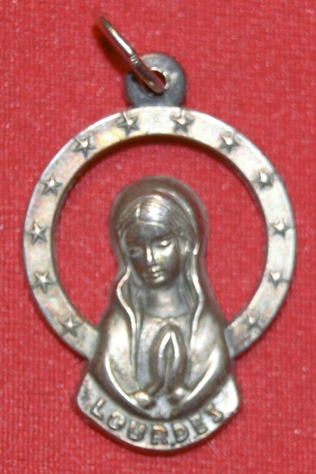 Medalla religiosa de Nuestra Señora de Lourdes y Aparición en la gruta Medidas Aproximadas: 30 mm x 21 mm #264