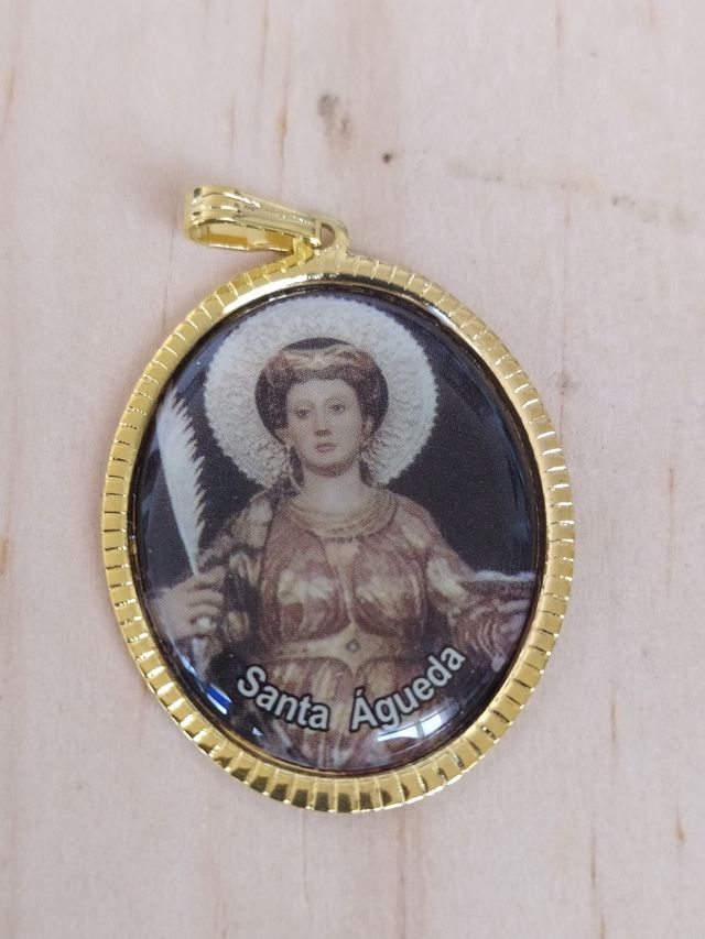 - Medalla dorada de 4 cm con imagen de Santa Águeda a color y esmaltada 🔥
