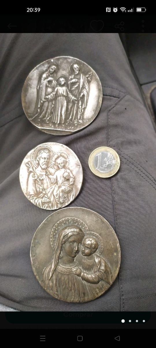 se venden medallas antiguas de plata.con motivos religiosos ..por las tres..