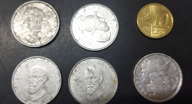 HERNANDO DE SOTO (2 piezas), DIEGO DE ALMAGRO, FELIPE III, HERNAN CORTES