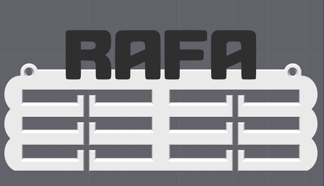 Medallero diseñado para colgar medallas, con el nombre Rafa en relieve. - Diseño moderno y resistente. - Acabado en blanco. - Incluye agujeros para colgar.