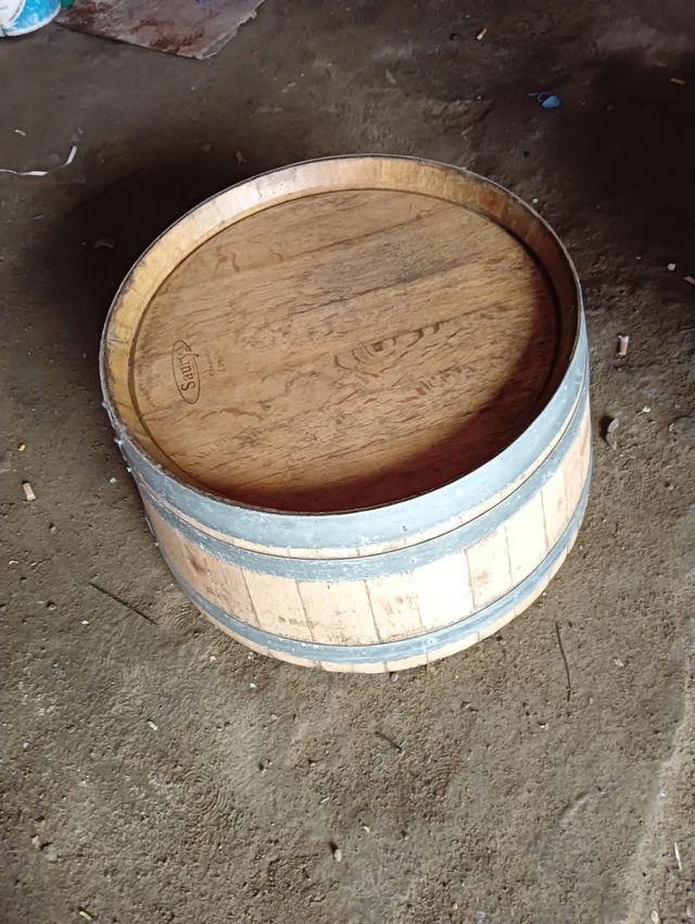 Se vende media barrica Para hacer de botellero, jadinera, una mesa...