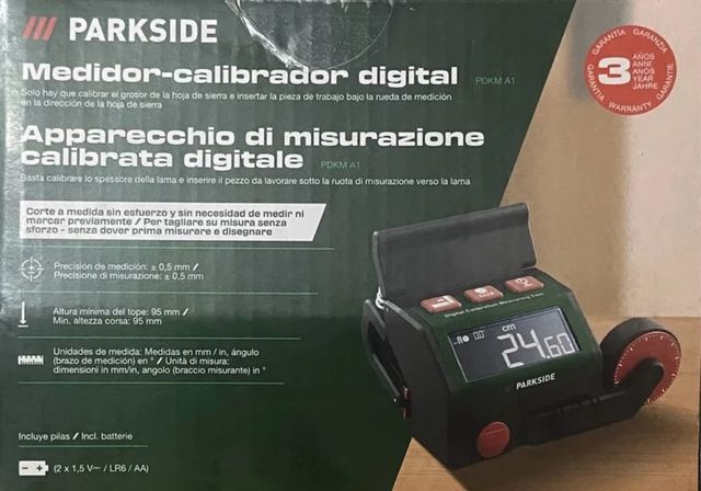 Detalles del productoMedidor y calibrador digital de la marca Parkside, modelo PDKM A1. Ideal para trabajos de carpintería y bricolaje.