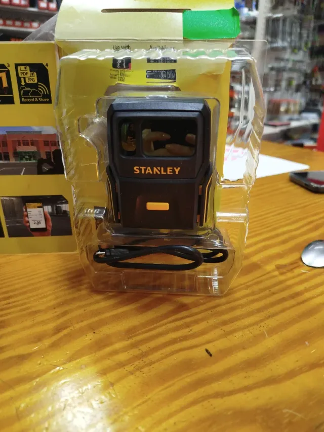 Medidor de distancia Stanley en su empaque original. - Diseño compacto y moderno. - Incluye cable de carga.