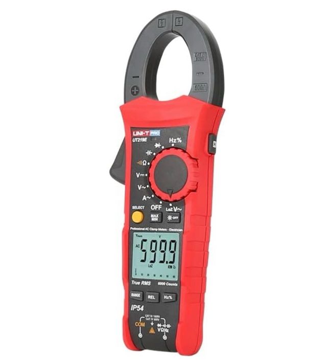 Medidor de pinza profesional UNI-T UT219E para electricista. - Diseño robusto y ergonómico. - Pantalla digital clara. - Pinza para mediciones de corriente AC.