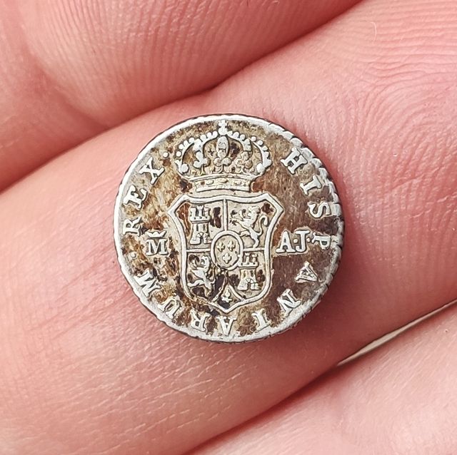 MONEDA DE PLATA DE MEDIO REAL DE FERNANDO VII ACUÑADA EN EL AÑO 1824 EN MADRID -AJ-. MUY BONITA. PÁTINA. DIÁMETRO: 15 mm. PESO: 1,51 gr.