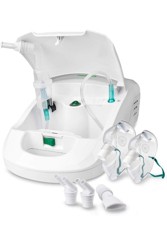 Detalles del productoMedisana IN 550 Inhalador nebulizador compresor con boquilla y mascarilla para adultos y niños, para resfriados o asma con accesorios adicionales, tubo largo y compartimento para accesorios