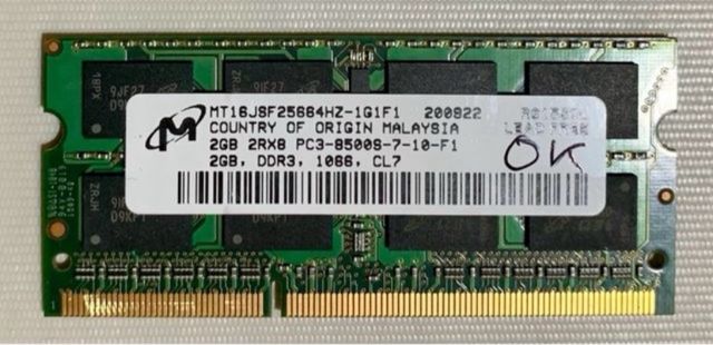 Memoria RAM 2GB DDR3 1066MHz SODIMM TESTEADA