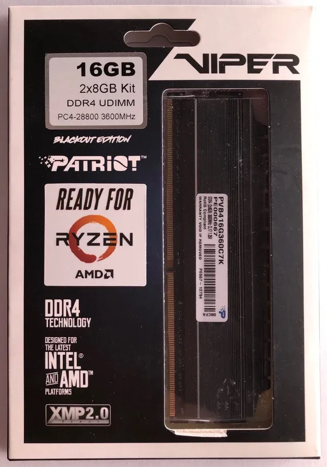 Detalles del productoMemoria RAM DDR4 Patriot Blackout Edition con una velocidad de 3600Hz.