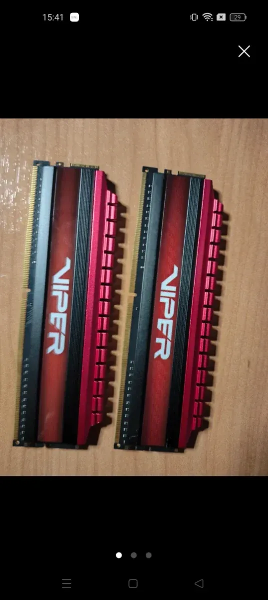 Dos módulos de memoria RAM Patriot Viper con disipador rojo. - Capacidad total de 16GB. - Configuración de 2x8GB. - Velocidad de 3000MHz.