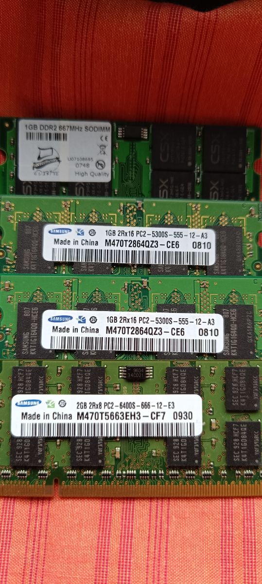 Memoria portátil Pc 2 de 1Gb 3 unidades por 2€ cada una y 2 2Gb por 4€ cada una. Dispongo de otras memorias en mi perfil de portatil y de Pc.