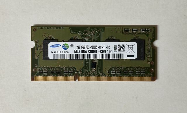 1 módulo SAMSUNG DDR3-1333 de 2 GB para portátiles, compatible con INTEL, AMD y MAC, testeado, de 2ª mano. 3 meses de garantía.