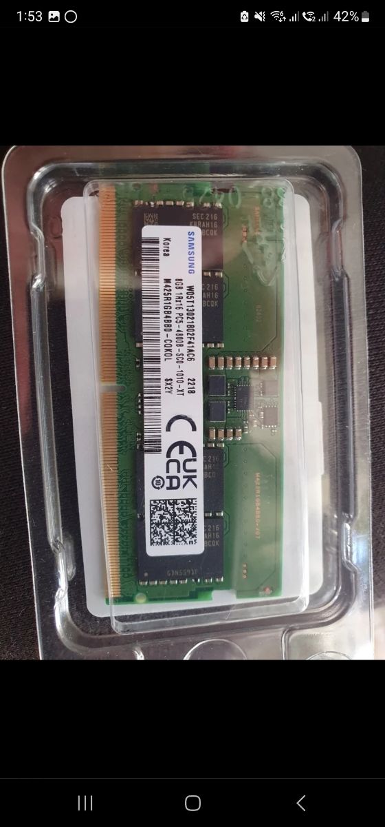 Memoria RAM 8GB DDR5 4800mhz SODIMM. Esta nueva, mi ordenador nuevo tiene 1 semana y le he remplazado está memoria por una de 16Gb, por ese motivo la vendo.
