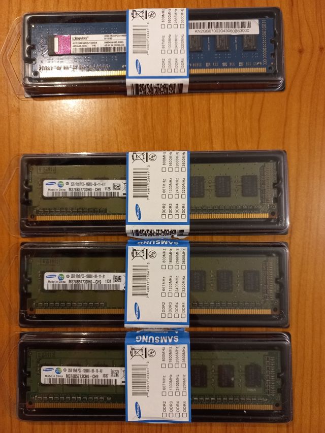 Vendo 4 módulos de memoria ram DDR3 de 2gb cada una,1333 MHz ,marca Samsung 3 unidades y 1 Kingston funcionando perfectamente las 4. No separo el lote.
