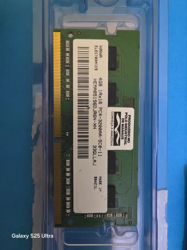 Módulo de memoria RAM DDR4 de 4GB para portátiles. - Capacidad: 4GB - Velocidad: 3200 MHz - Tipo: DDR4 - Fabricante: HANA ELECTRONICS - Hecho en Brasil