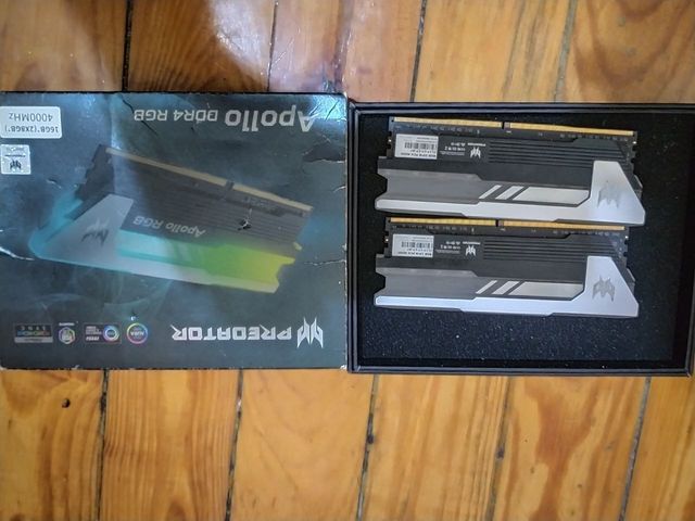 Kit de dos módulos de memoria RAM DDR4. - Modelo Apollo RGB. - Marca Predator. - Capacidad 16GB (2x8GB). - Velocidad 4000MHz.