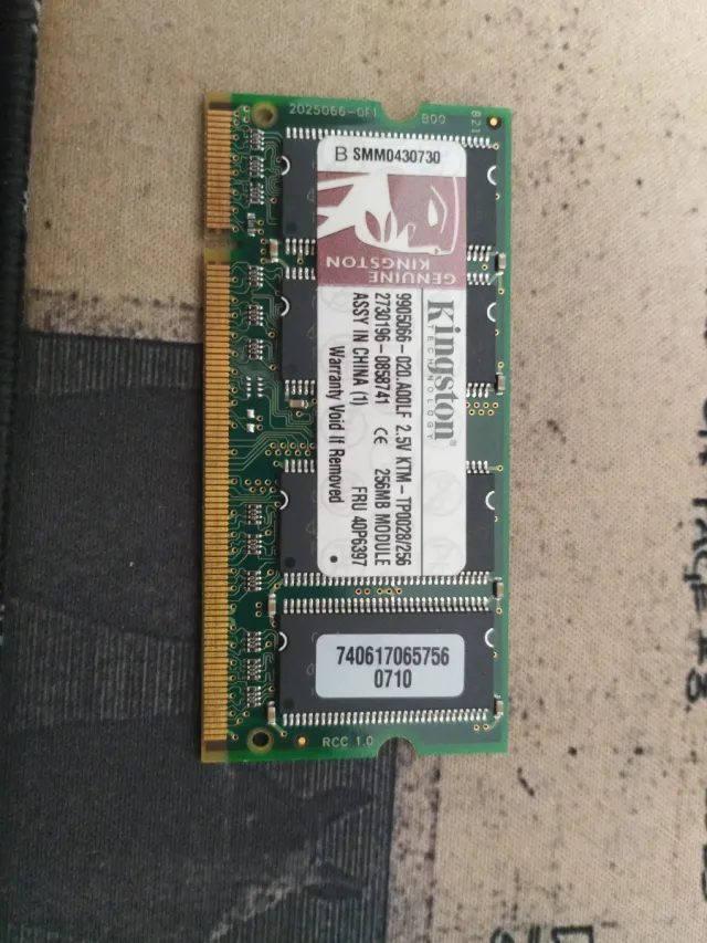Módulo de memoria RAM Kingston de 256MB. - Modelo: 9905066-020.AOOLF - Voltaje: 2.5V - Tipo: DDR - Fabricado en China